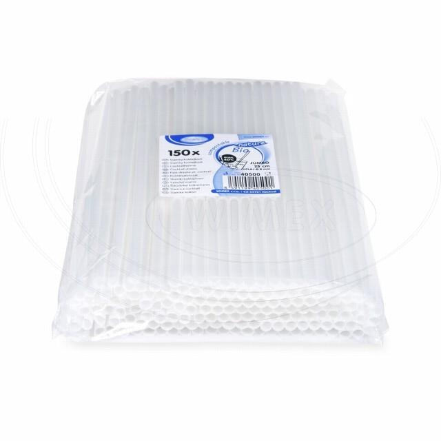 Slamky JUMBO biele (PLA) -BIO- 25 cm, Ø 8 mm [150 ks]